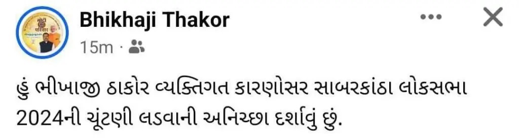 भीखाजी ठाकोर का चुनाव न लड़ने का एलान