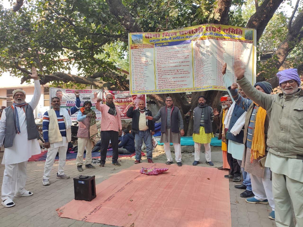 देवरिया। चीनी मिल चलाओ संघर्ष समिति, संयुक्त पंचायत निकाय मोर्चा एवं संयुक्त महा मोर्चा के तत्वावधान में बैतालपुर चीनी मिल को पुनः संचालित कराने तथा किसान हितों से जुड़ी अन्य मांगों के समर्थन में कलेक्ट्रेट परिसर में चल रहा किसानों का धरना शुक्रवार को 1 वर्ष 249वें दिन भी लगातार जारी रहा।