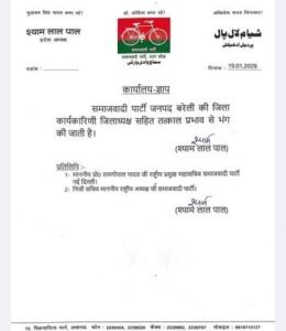 बरेली। समाजवादी पार्टी की बरेली इकाई में बड़ा एक्शन हुआ है। पूरी जिला कार्यकारिणी को तत्काल प्रभाव से बर्खास्त कर दिया गया है। सपा प्रमुख के निर्देश पर ये बड़ी कार्रवाई की गई है। प्रदेश अध्यक्ष श्याम लाल पाल ने आदेश पत्र जारी किया, जिसमें कहा गया कि ‘समाजवादी पार्टी जनपद बरेली के जिला कार्यकारिणी जिलाध्यक्ष सहित तत्काल प्रभाव से भंग की जाती है।’