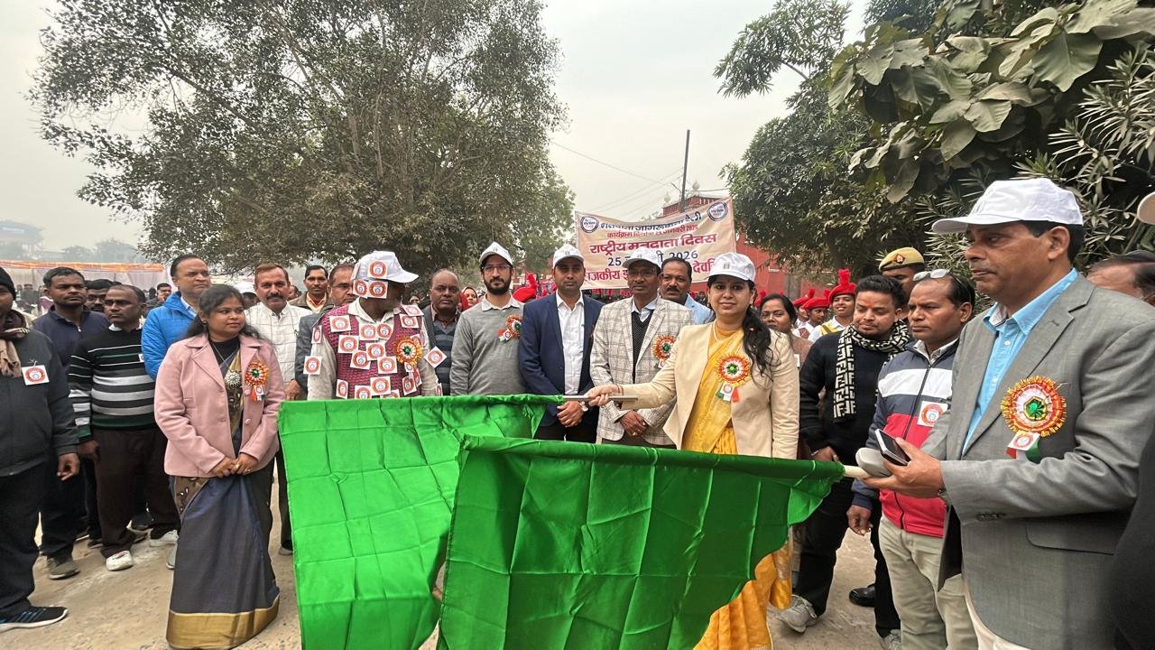 देवरिया। 16वें राष्ट्रीय मतदाता दिवस पर आयोजित मतदाता जागरूकता रैली का शुभारंभ जिलाधिकारी दिव्या मित्तल ने राजकीय इंटर कॉलेज से हरी झंडी दिखाकर रवाना किया। उन्होंने कहा कि मतदान लोकतंत्र की आत्मा है और प्रत्येक पात्र नागरिक का कर्तव्य है कि वह अपने मताधिकार का प्रयोग अवश्य करे। उन्होंने युवाओं से लोकतांत्रिक प्रक्रिया में सक्रिय सहभागिता की अपील की।